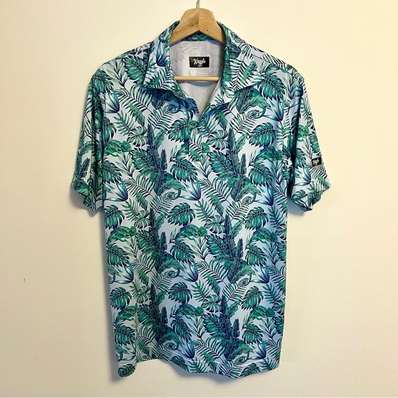 Waggle Chameleon Tropical Floral Short Sleeve Performance Golf Polo – Medium