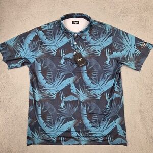 Waggle Golf Polo Shirt Mens 2XL Blue Palms Performance Stretch NEW
