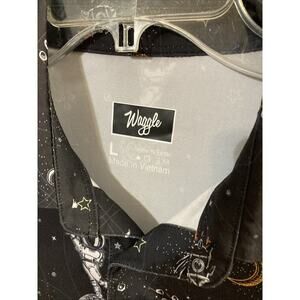 Waggle Golf Polo Shirt Mens L Black Astronaut Space Print Mission Albatross