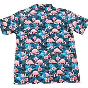 Waggle Golf Polo Flamingo print 🦩 Hawaiian tropical size large