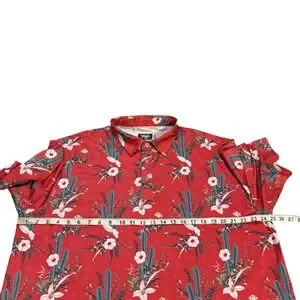 Waggle Mens 2XL Red Cactus Floral Performance Golf Polo Shirt Stretch