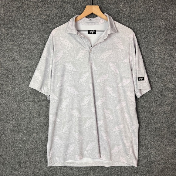 Waggle Mens Golf Polo Shirt XL Owl Paisley Print Short Sleeve Button Up