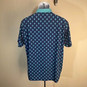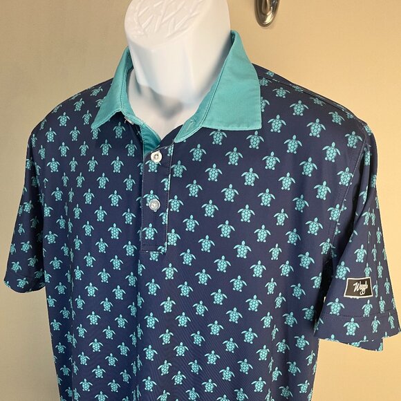 Waggle Men's blue w/ teal turtles all over performance golf polo shirt Large L