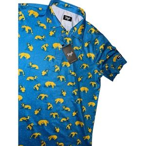 Waggle NWT Mens Blue Yellow Bears Performance Short Sleeve Polo Golf Size L