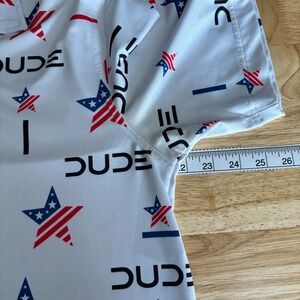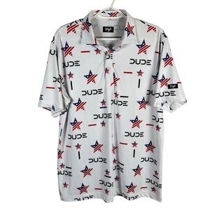 Waggle Performance Golf Polo Shirt Dude Wipes USA Stars Mens L Stretch S/S read