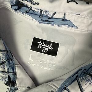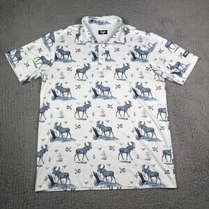 Waggle Polo Golf Shirt Mens Large White Moose is Loose Print Performance Stretch