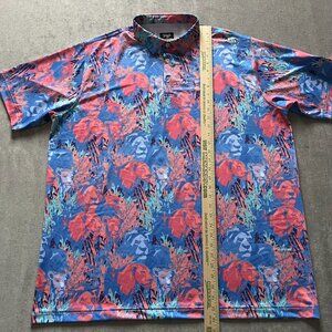 Waggle Polo Shirt Men 3XL Blue Lion Jungle AOP Performance Golf Stretch Tech