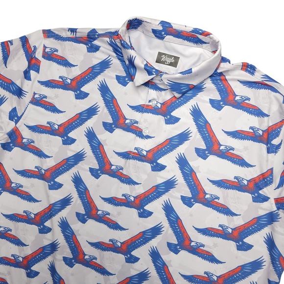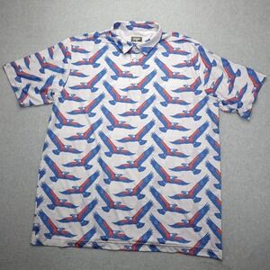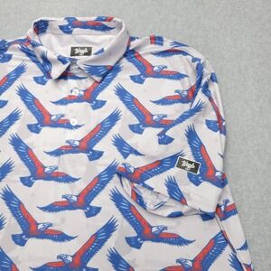Waggle Polo Shirt Mens 2XL White Blue Red Eagle Print Golf Performance Stretch