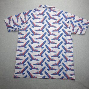 Special notes: Pre-owned Waggle polo shirt with fabric clean and smooth throughout, vibrant eagle graphics, and light wrinkling from storage; original retail tags are not included.