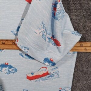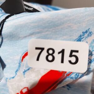 Color: Light blue with red and blue print