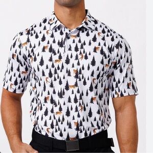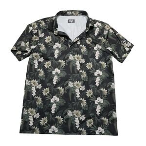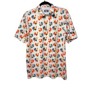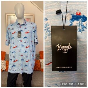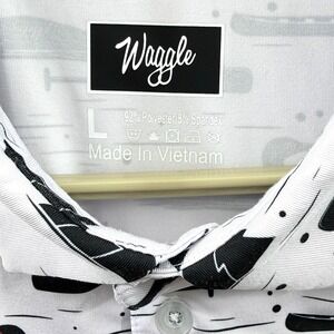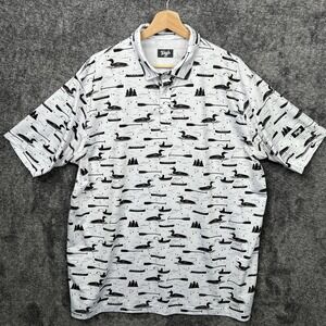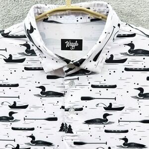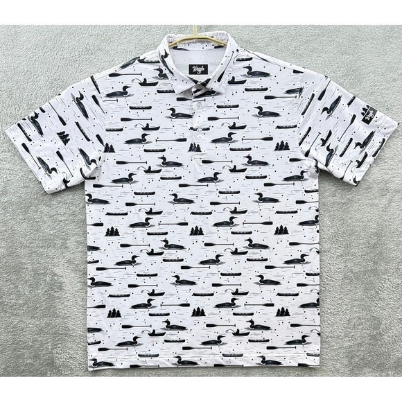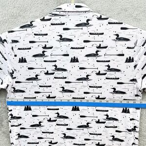 Waggle Polo Shirt Mens Large White Loon Lake Fish Boat Golf Performance Stretch