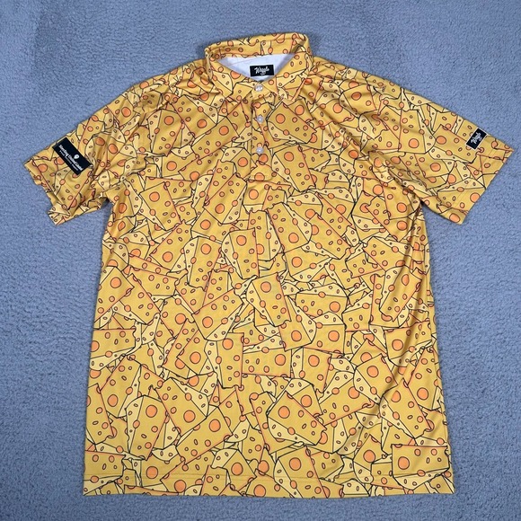 Waggle Polo Shirt Mens Large Yellow Orange Cheese Block AOP Golf Performance