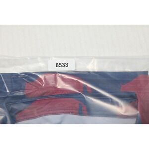 Color: Navy blue main body with red buffalo and tonal geometric pattern accents.