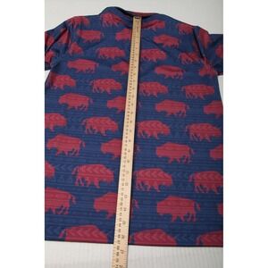 Waggle Polo Shirt Mens Small Blue Buffalo Allover Print Golf Performance Stretch