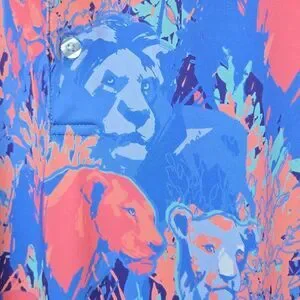 Waggle Men's Clubhouse King Golf Polo Shirt 2XL Lion Tropical Print Short Sleeve
