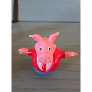 The Waggles SMILE-N-OINK The Pig Figure is a 3" plastic action figure featuring a pink pig with a red jacket. Designed for children ages 3-4 years, this toy from the Waggles franchise encourages imaginative play and promotes a positive message to be kind. Made of durable plastic, this adorable pig figure is sure to bring joy and companionship to young fans of the brand.