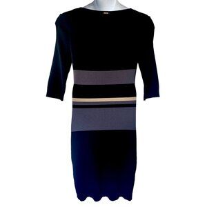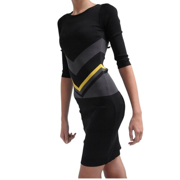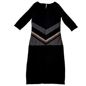 Waggon Paris Black & Gray Chevron Pattern Plus Size Sweater Dress 14 / XL NWT