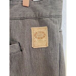 The Wah Maker Frontier Pants for men in size 46 offer a Western-inspired style with a gray color and buttonfly closure. These dress pants feature a high-rise waist and straight leg fit, perfect for casual, travel, or workwear occasions. Made from cotton fabric, these pants also include pockets, suspenders, and are machine washable for easy care. The design accents include a logo and a striped pattern, giving off a cowboy, outdoor, or American ranch theme. Perfect for the winter, fall, and spring seasons, these pants are a comfortable and stylish addition to any wardrobe.