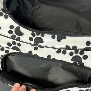 Chic carry bag with paw print pattern. Includes multiple pockets and a sturdy handle.