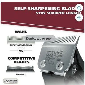 Wahl heavy duty motor that delivers exceptional power for no-snag cutting plus self-sharpening precision ground blades that cut through all hair types and stay sharp longer