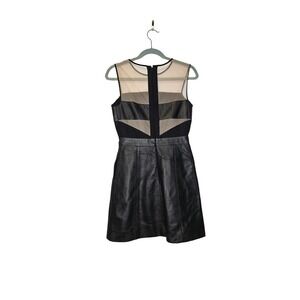 Wai Ming 2 Black Leather Perforated Sheath Dress Sheer Mesh Sleeveless Career