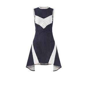 Navy and white cotton (98% Cotton, 2% Polyurethane Fiber). Sleeveless. Crew neckline. Full skirt. Hidden back zipper. Partially lined.
