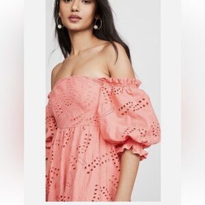 Embrace elegance with this chic coral off-shoulder midi dress. Perfect for any occasion, it offers a flattering fit and stylish design. Gently used!