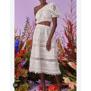 Waimari Jade White One Shoulder Cut Out Dress Small Lace Cotton NWT $420