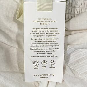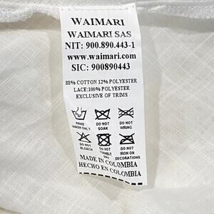 Waimari Panarea Top in White. Size S / Small. Features adjustable ruched bust detail, blouson sleeves with elastic trim, lightweight fabrication with embroidered detail, scallop guipure lace trim, smocked back panel. 88% cotton, 12% polyester. Style T146CTW. NWT / New with tags.