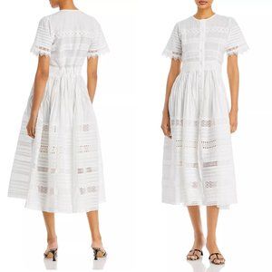 THIS IS MY FINAL PRICE OFFERS WILL BE DECLINED NOT CONSIDERING OFFERS CONDITION: brand new unused no wear no flaws MEASUREMENTS:  (Taken flat across) approximately** chest= 18" waist= 16" hip= fits up to 24" across length= 52"   DESCRIPTION: This waist-defining Camila White dress brings charm and elegance to any occasion. Pair yours with heeled sandals and a small clutch to complete your look. DETAILS: from a pet & smoke free home  - Unlined - Fits true to size, take your normal size -Designed to be fitted at the bust and waist, loose at the hip -Front button closure -Lightweight, non-stretchy fabric 100% COTTON LACE: 100% POLYESTER EXCLUSIVE OF TRIMS Note that the lace is a different color than the dress, the dress is pure white and the lace is cream/ off white