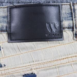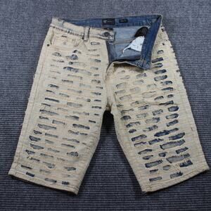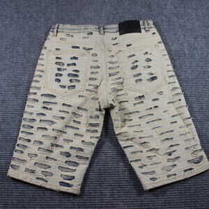 Waimea Denim Shorts Mens 32 Beige Skinny Fit Ripped Lattice Button Fly