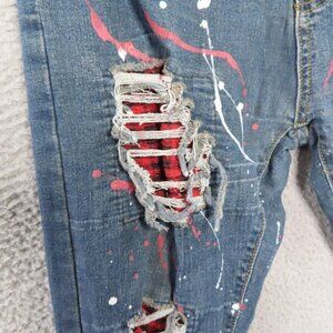 Waimea Jeans Mens 36x32 Denim Grunge Painted Patches Ripped Skinny Streetwear