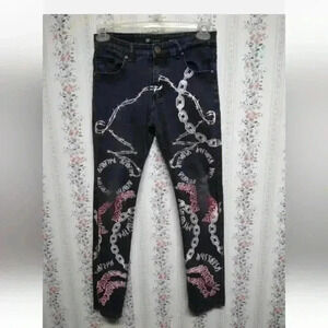 Waimea Kids Pintuck Distressed Denim Jeans Size 18 Chain Design