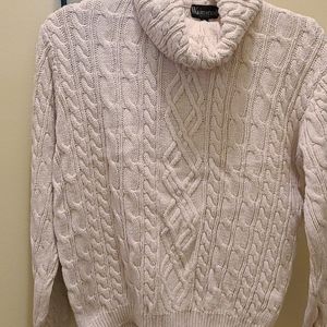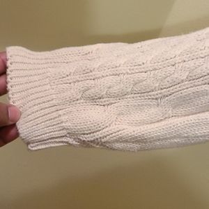 Cream color sweater has ribbing designs throughout the sweater. No holes, stains etc. Smoke free home
