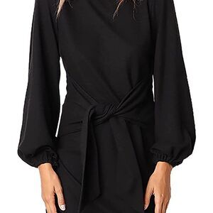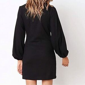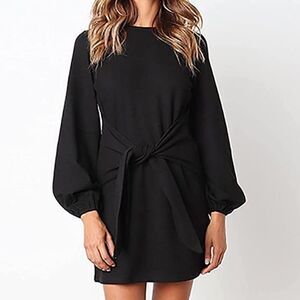 Perfect for your next holiday party! Stunning and elegant cocktail dress with balloon sleeves and waist knot. Soft, stretchy and comfortable material. Great fall cocktail dress.