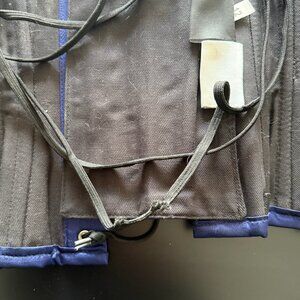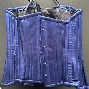 It features a solid deep navy/royal blue color, hook & eye closure, normal straps that are a bit worn down but this would be the worst part about the corset, due to low usage in a 5+ year period.