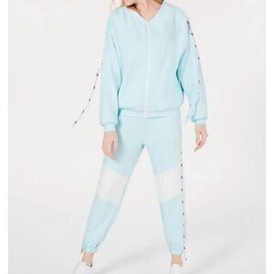 Waisted Pastel Blue Graphic zip-front Track Jacket