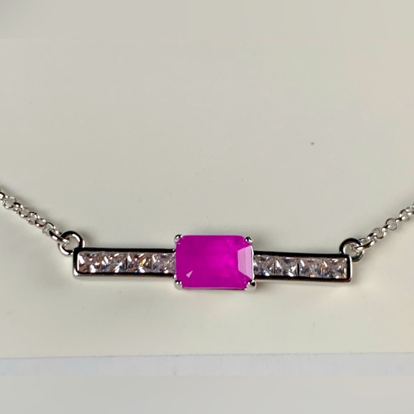 Rhodium Plated Lab Created Purple Fluorite Fused with Genuine Quartz 18” + 2.5” extender Necklace MSRP $168