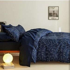Wake In Cloud - Constellation Duvet Cover Set, Space Witchy Star Celestial Galaxy Astrology for Teen Kids Boys Girls, Soft Lightweight Bedding, 3-Piece, Navy Blue, Queen Size