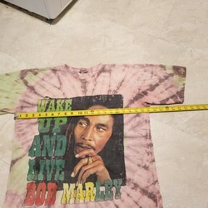 Selling Wake Up And Live Bob Marley Tie Dye All Over Print AOP Double Sided T Shirt. Tag has been cut so go by measurements provided in photos. You can see the condition from the photos. You can get further information from looking at what is shown in the photos. Pricing low to sell fast. I offer combined shipping on multiple purchases. All purchases should arrive within 2 to 9 days. International buyers should expect longer shipping time. If there are any issues please do the right thing and message me before leaving feedback.