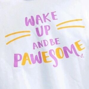 Wake Up Pawsome Crewneck Medium Sweatshirt White Cat Lover Cute Graphic Top