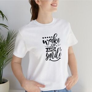 Wake Up and Smile Women's Short Sleeve Cotton T-Shirt with inspirational message: