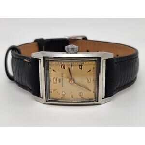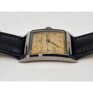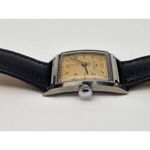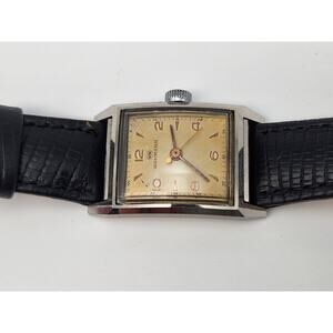 Vintage Wakmann Men’s Tank Case Manual Wind Wristwatch with original box. This classic timepiece features a rectangular tank-style case with timeless vintage appeal, highlighting Wakmann’s reputation for quality craftsmanship.