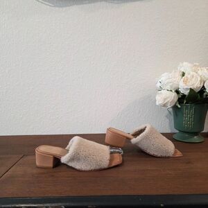 New without Box - Wal & Pai - Itasca Ivory Natural Shearling Leather Square Toe Mule Sandals 37 (US 6.5)