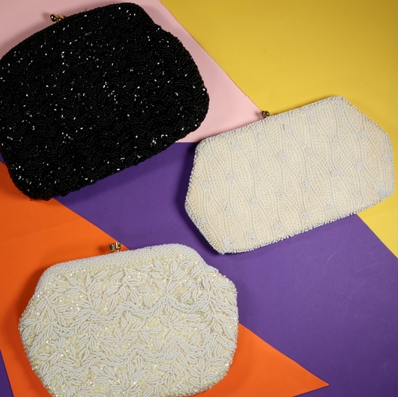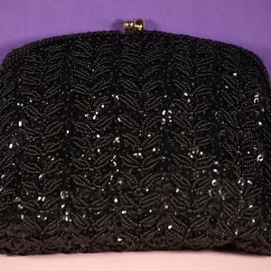 Vintage Hand-beaded in Belgium Walborg evening bag with chain.