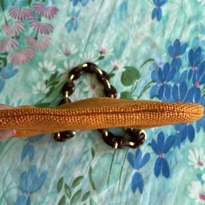 Adorable kisslock vintage purse. It’s a woven burlap feeling material (not AS rough as burlap) fits my iPhone 13 plus with room to spare.