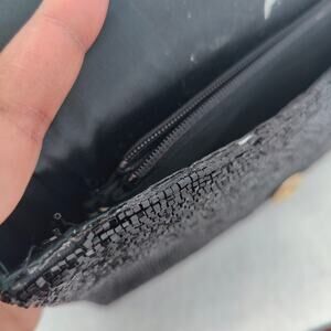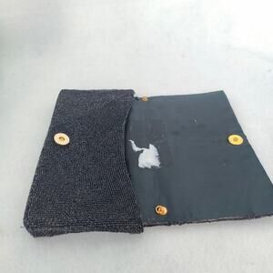 Walborg Multicolor Black Burgundy Gold Beaded Statement Clutch Purse Vintage Wallet Hand Made in Korea, fully beaded, snap button closure, scrolls and heart