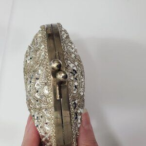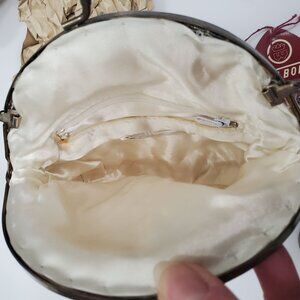 Walborg Vintage 1950s 1960s Ivory Silver Beaded Kiss Lock Evening Clutch Bag NWT