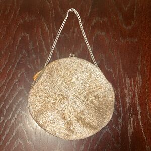 Walborg Vintage Silver Beaded 1960's Round Purse Handbag with kiss lock