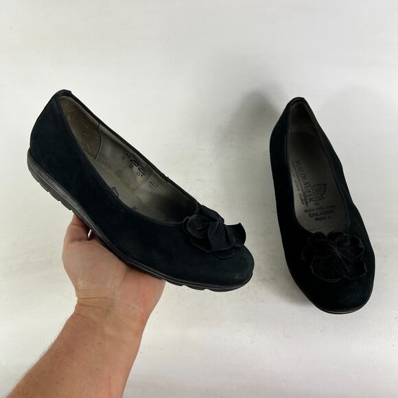 Waldlaufer Ballets Flats Women's 10 Black Faux Suede Slip-On Flower Round Toe
